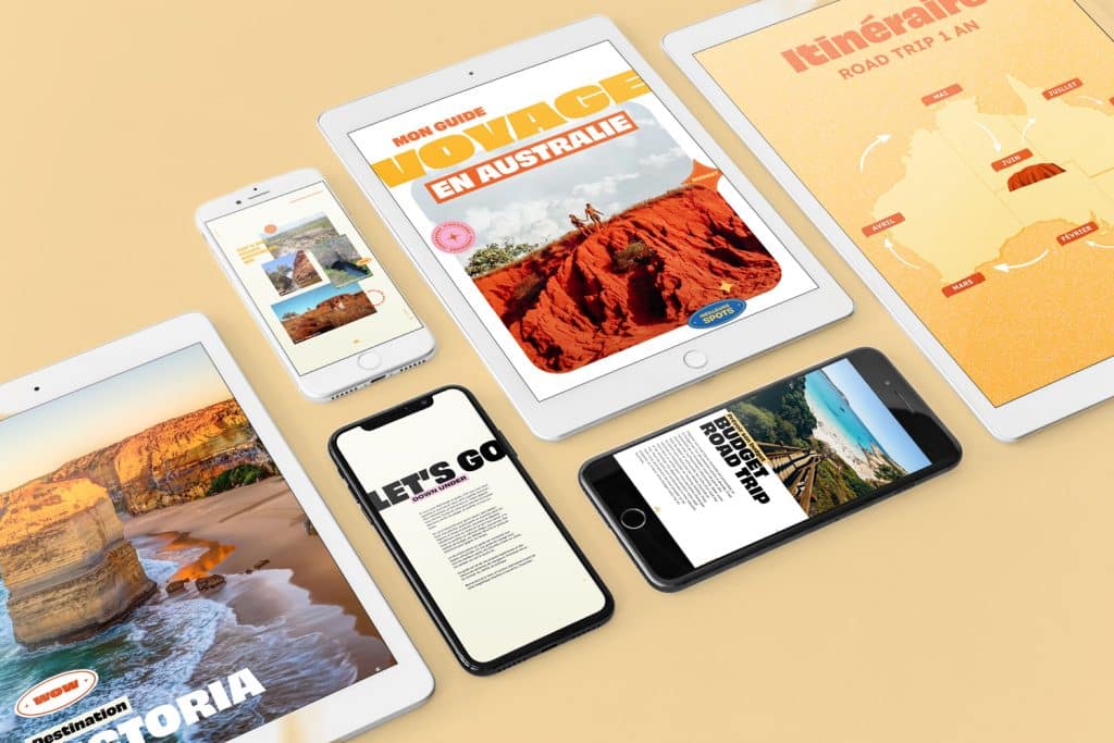 Cet eBook vous accompagnera pas à pas dans la préparation de votre séjour, jusqu’à l’organisation de votre itinéraire sur place. Vous y trouverez de nombreux conseils pour choisir vos destinations, planifier votre budget et profiter au maximum de votre aventure. Et en bonus : un guide complet sur toute l’Australie avec les meilleurs spots pour dormir, voir la faune etc.